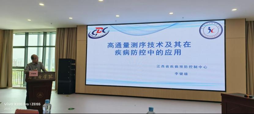 本次论坛以“聚焦前沿、智启未来”为主题。同济大学教授刘海鹏以《细胞应激介质与肿瘤治疗》为题,深入解析细胞应激介质作用机制,分享肿瘤治疗领域的前沿研究思路与方向;中国医学科学院北京协和医学院教授魏强围绕《认识病原微生物——感染与免疫》,系统阐述病原微生物特性与感染机制,结合最新科研成果展现免疫调控研究新进展;江西省疾病预防控制中心副主任技师李健雄聚焦《高通量测序技术及其在疾病防控中的应用》,介绍技术发展现状并结合实践案例,说明其在传染病溯源、慢性病防控等场景的应用价值;江西省疾病预防控制中心刘道峰博士以《免疫学快检新技术开发及在食源性疾病中的应用》为主题,讲解新技术研发逻辑与优势,分享其在食源性疾病快速检测、风险预警中的实践成果。