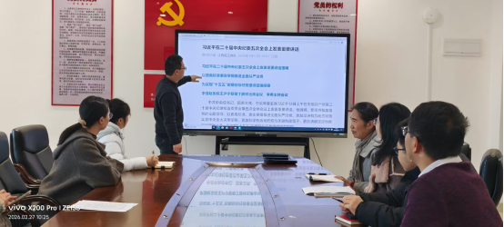 其次系统学习2026 年教育系统全面从严治党工作视频会议精神。聚焦教育系统全面从严治党的具体要求,重点解读了会议关于加强师德师风建设、规范办学治校行为、强化科研诚信管理等与高校工作密切相关的部署安排。同时认真学习《中国共产党第二十届中央纪律检查委员会第五次全体会议公报》,帮助党员准确把握全会提出的新思想、新论断、新要求。