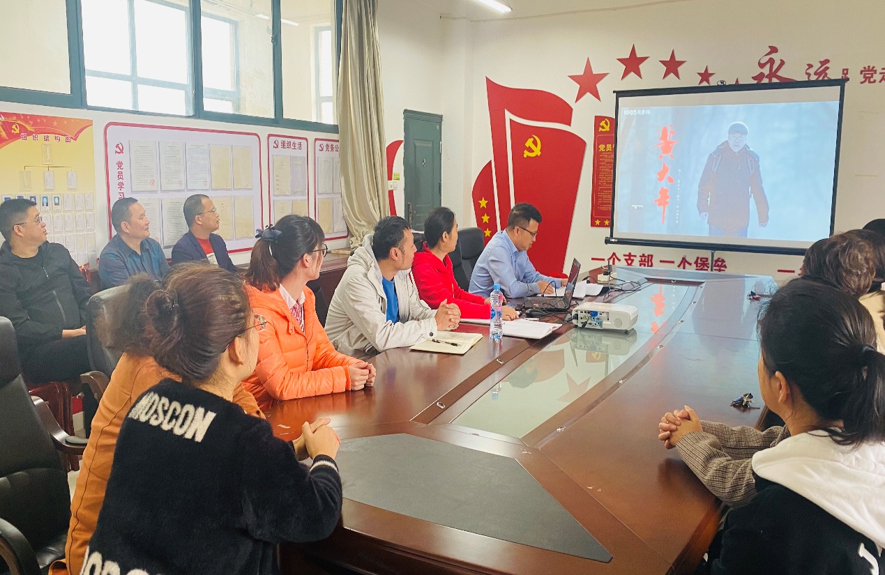 集中观看黄大年同志生前先进感人事迹《黄大年》视频(吴龙祥 摄)