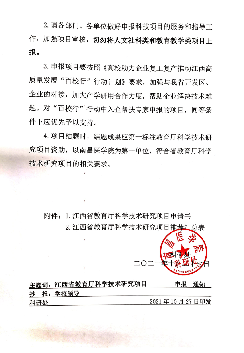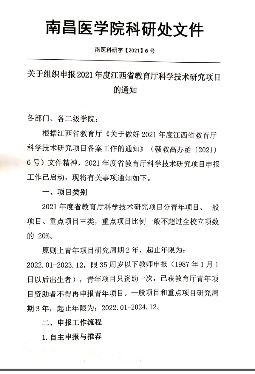 转发科研处《关于组织申报2021年度江西省教育厅科学技术研究项目的通知》